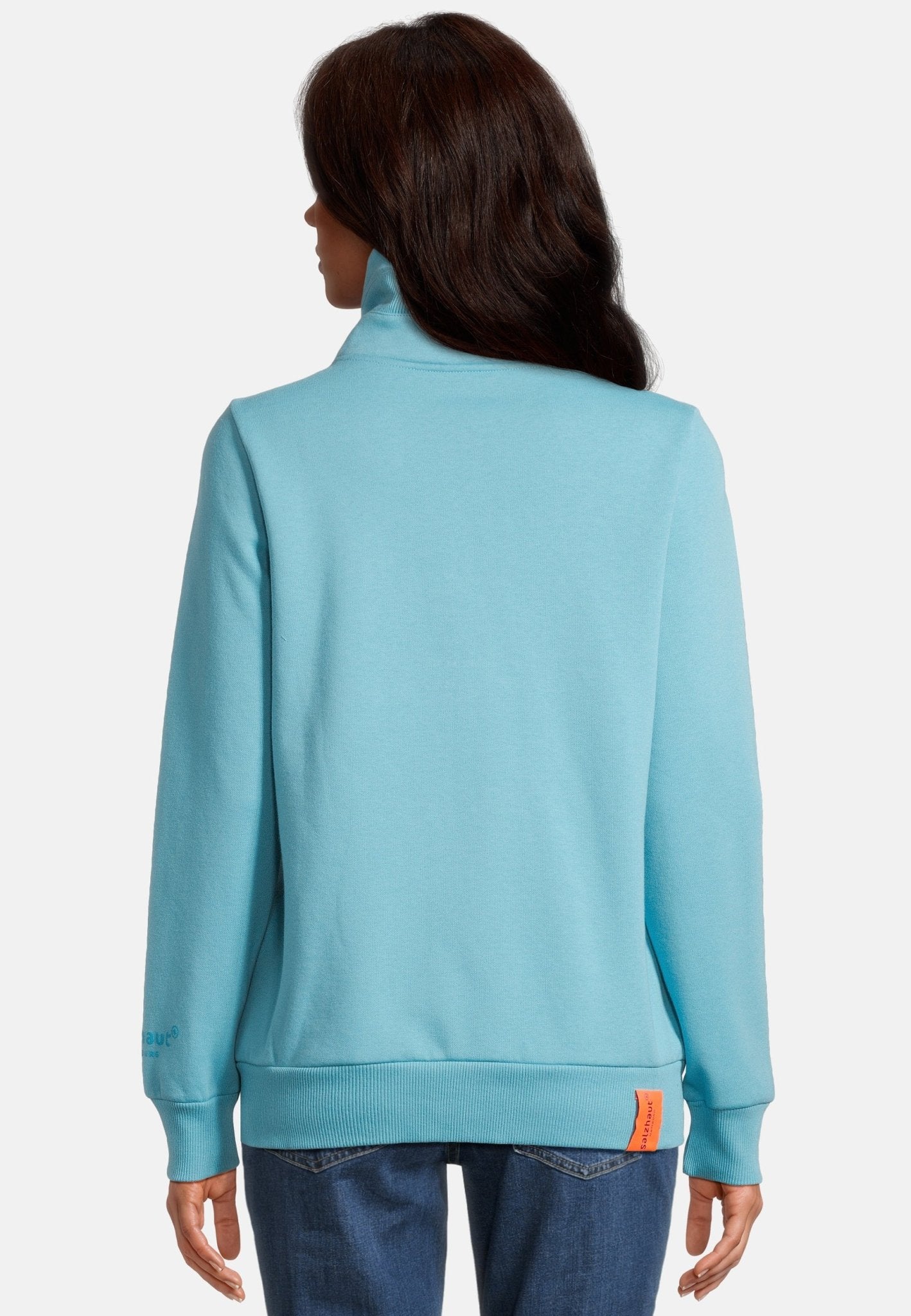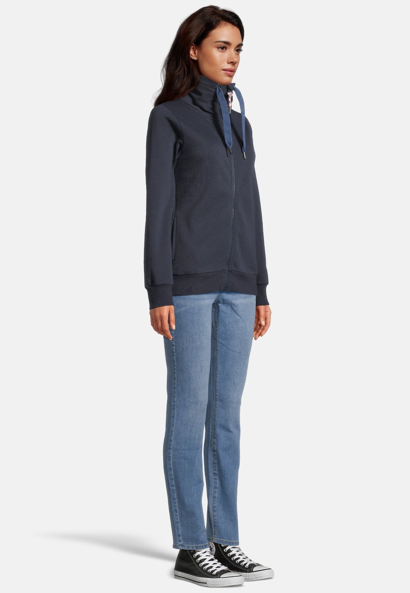 Gefertigt aus weicher Baumwolle mit einem dezenten Polyester-Anteil und innen angeraut, zeigt die Sweatjacke ihre hochwertige Qualität ohne viel Aufhebens. Sorgfältige Verarbeitung und ein dezenter salzhaut Foam Print setzen stilvolle Akzente, die das Unifarbene lebendig machen. Die Details wie Reißverschluss, Stehkragen und seitliche Taschen fügen sich harmonisch zusammen und unterstreichen den durchdachten Charakter der Sweatjacke.