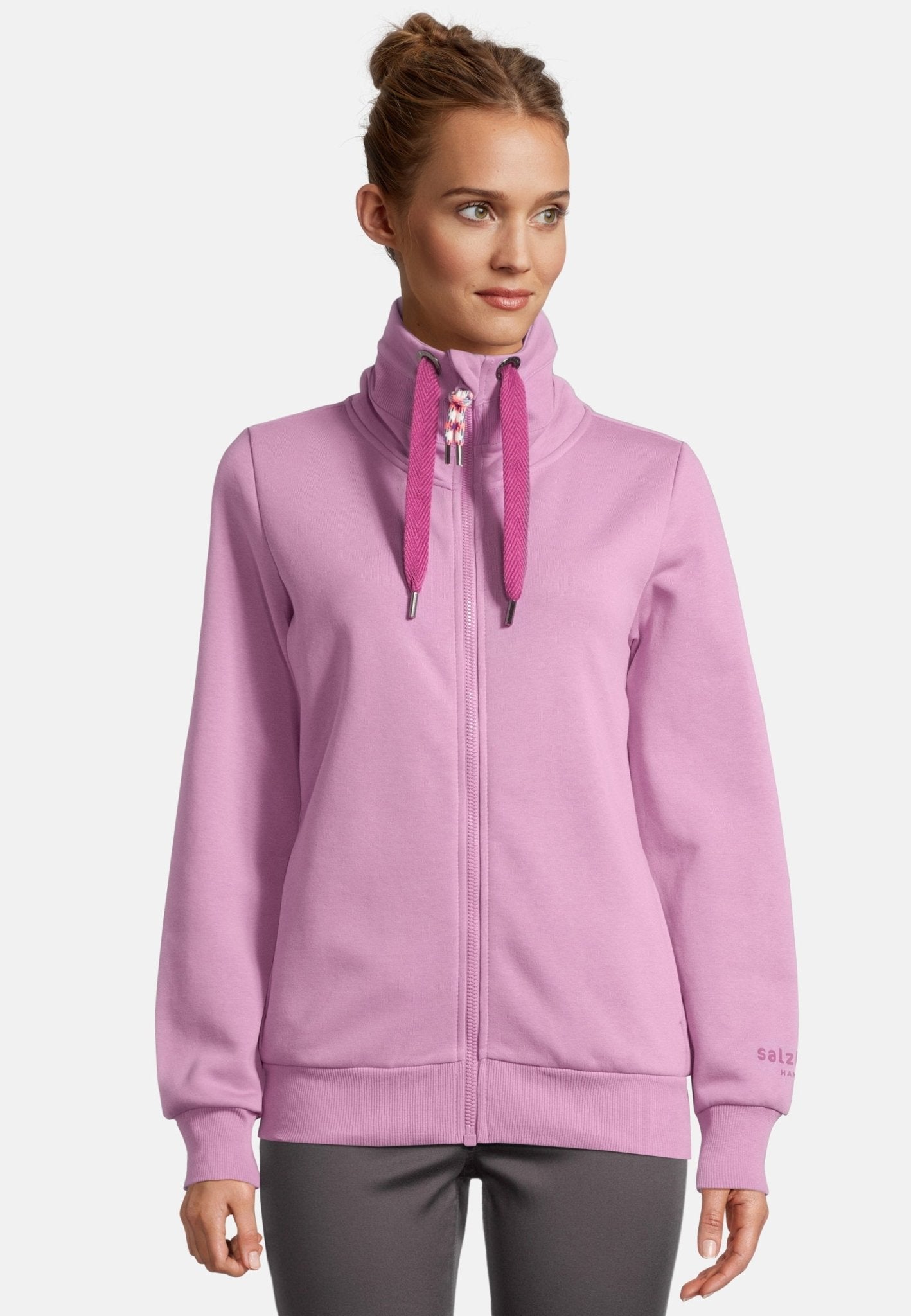 Die RACKELN - UNI Damen Leicht tailliert Sweatjacke von Salzhaut umarmt den Alltag mit nordischer Leichtigkeit: Ein kuscheliger Stehkragen schmiegt sich angenehm an den Hals, während die leicht taillierte Passform die Silhouette schmeichelt. Gleichzeitig bietet die Sweatjacke ausreichend Bewegungsfreiheit für aktive Tage draußen und fühlt sich luftig und unkompliziert an. Beim Tragen spürt man sofort die freundliche, lebensfrohe Stimmung, die Salzhaut ausmacht.