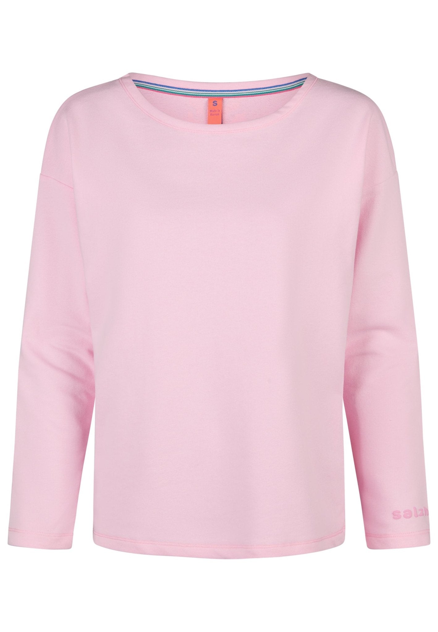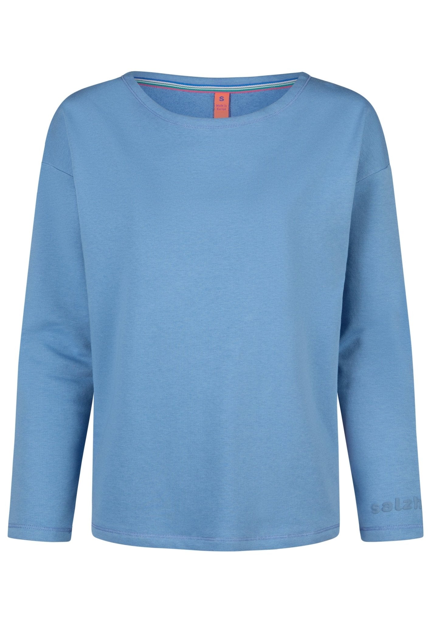 Das Sweatshirt UNNERWEGS Damen Relaxed-Fit von Salzhaut umschmeichelt die Haut mit einem luftigen, entspannten Tragegefühl. Die lockere Relaxed-Fit-Passform und die überschnittenen Schultern schenken Bewegungsfreiheit und nordische Leichtigkeit, ideal für entspannte Tage und spontane Abenteuer. Der innen aufgeraute French Terry hält angenehm warm und fühlt sich gleichzeitig weich und kuschelig an, sodass das Longsleeve dich zuverlässig durch den Tag begleitet. Rundhalsausschnitt und abschließende Rippenbündchen runden den komfortablen Sitz harmonisch ab.