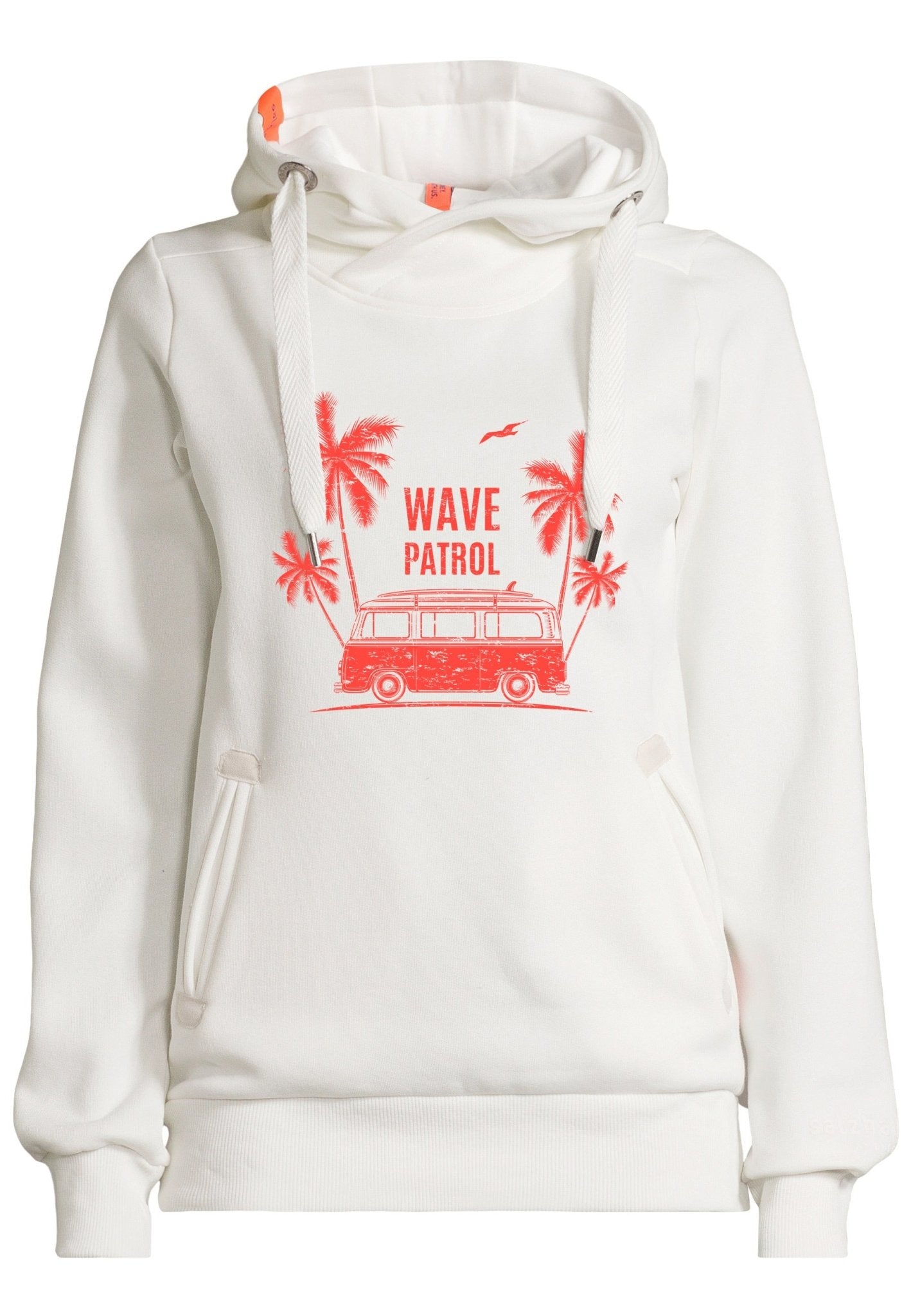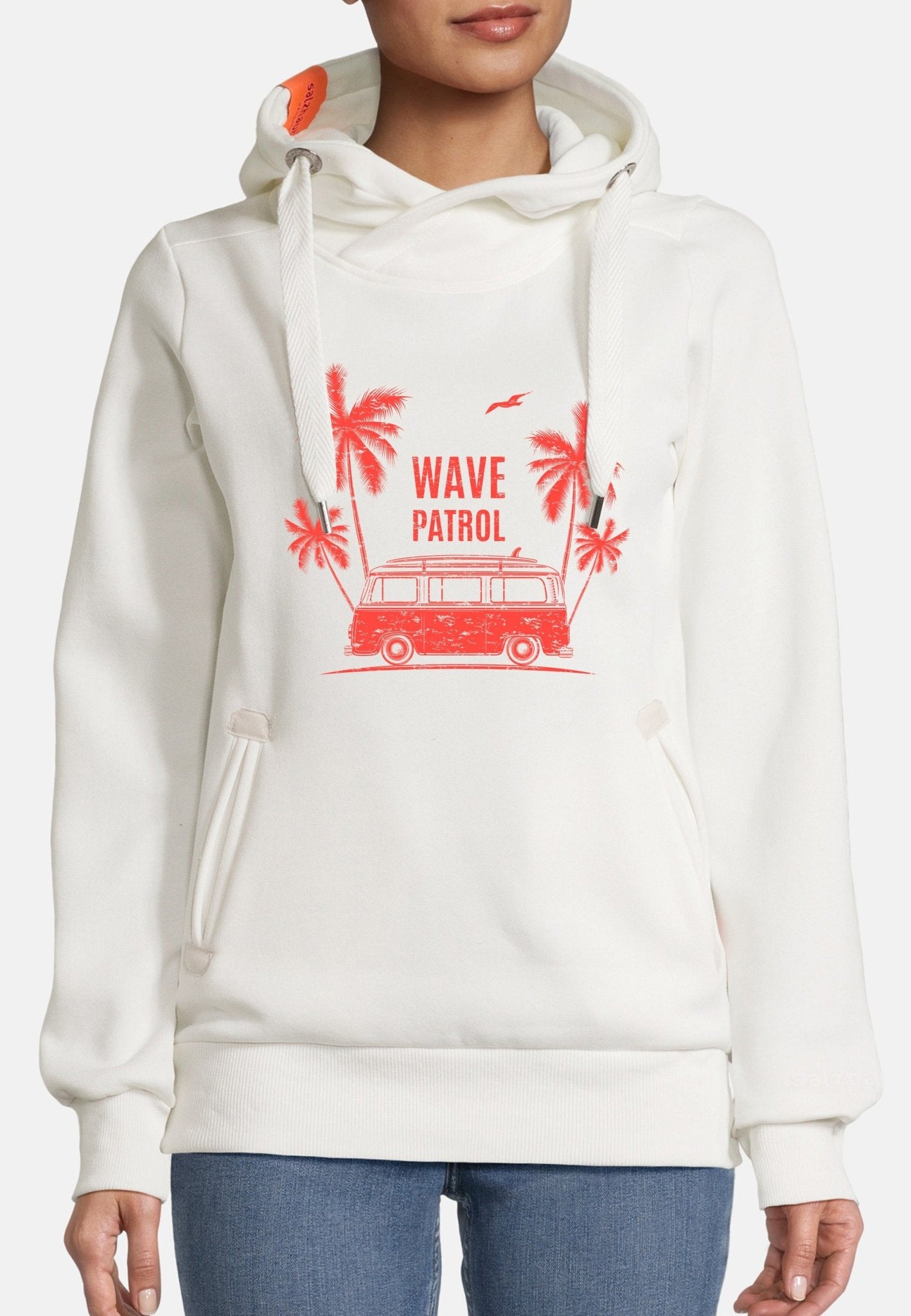 Der SÜNN - WAVE PATROL Damen normale Passform Hoodie von Salzhaut fühlt sich sofort vertraut an: leicht, dennoch kuschelig und mit viel Bewegungsfreiheit für Alltag und Abenteuer. Die normale Passform schenkt schmeichelnden Sitz ohne einzuengen, während die Kapuze ein Gefühl von Geborgenheit gibt. Nordische Lebensfreude strahlt durch das luftige Tragegefühl und macht den Hoodie zum liebsten Begleiter.