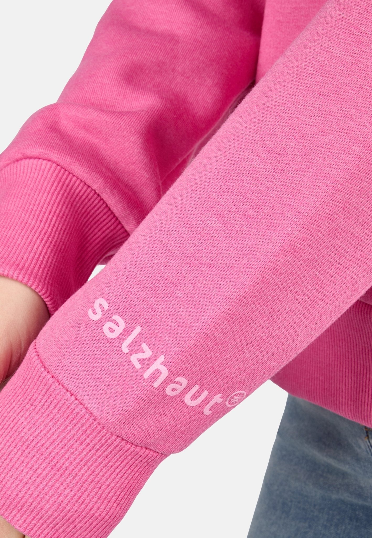 Für die Qualität steht Salzhaut mit sorgfältiger Verarbeitung und Materialien wie weicher Baumwolle und Polyester, die einen angenehmen Griff bewahren und lange Freude bereiten. Die farbig abgesetzte Innenkapuze setzt einen fröhlichen Akzent, das Salzhaut Foam Print am linken Unterarm gibt dem Hoodie subtile Charakterdetails. Made in Europe bringt norddeutsche Gemütlichkeit in jedes Stück.