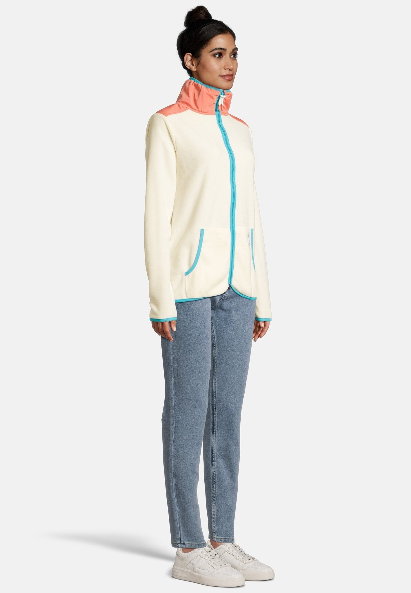 Die KLÓÓWERBLAD Damen normale Passform Fleecejacke von Salzhaut schmeichelt sofort beim Anziehen: leicht und luftig und doch anschmiegsam, sie schenkt Bewegungsfreiheit für Alltag und Ausflug. Der Stehkragen wirkt wohlig ohne aufzutragen und die normale Passform sorgt für entspannten Sitz, sodass die Fleecejacke zu jeder Bewegung einlädt und nordische Lebensfreude spürbar wird.