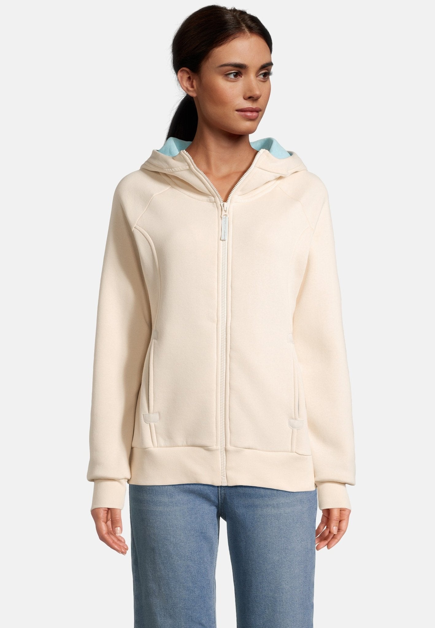 Die KÖNNENK Damen Leicht tailliert Hoodiejacke fühlt sich luftig und leicht an und umschmeichelt den Körper mit einem dezenten, leicht taillierten Schnitt. Der sportliche Raglanschnitt schenkt viel Bewegungsfreiheit und macht die Sweatjacke zu einem verlässlichen Begleiter für Alltag und Abenteuer. So sitzt die Hoodiejacke stets bequem, ohne einzuengen, und vermittelt nordische Lebensfreude bei jedem Schritt. In Beige wirkt die Hoodiejacke besonders unkompliziert und hell.