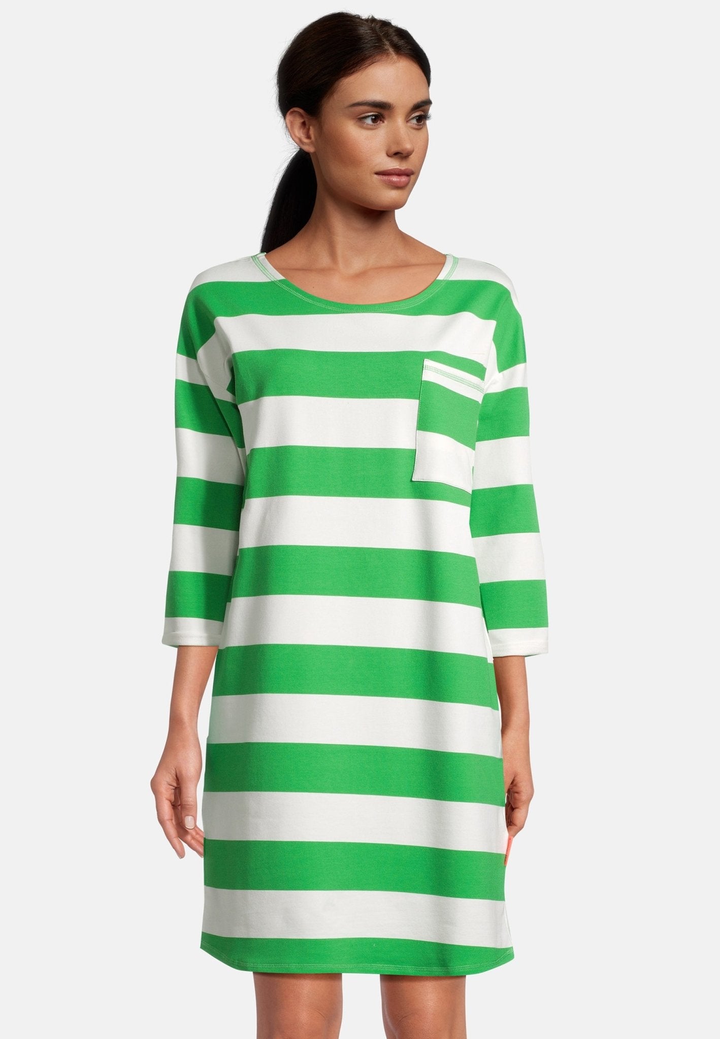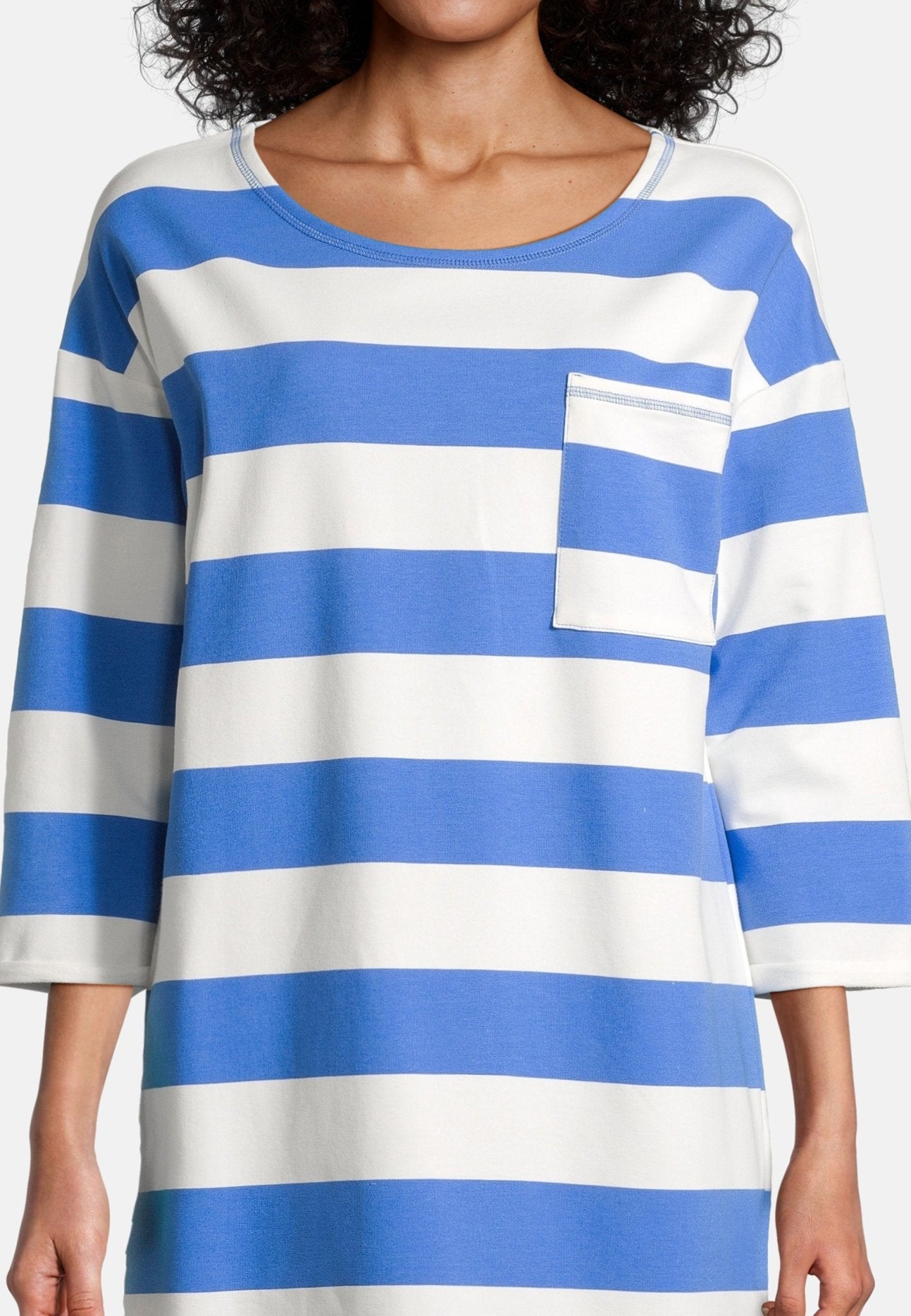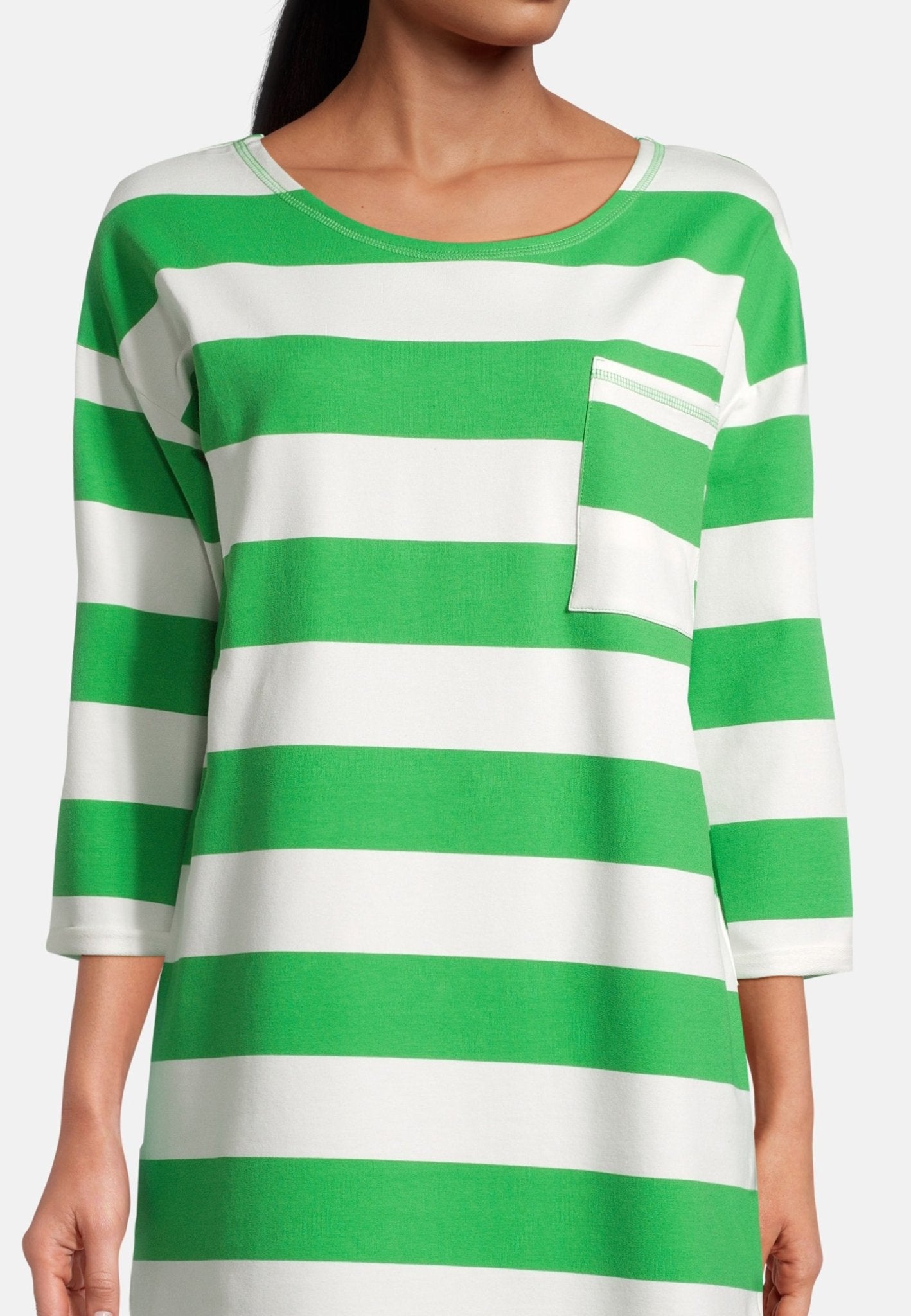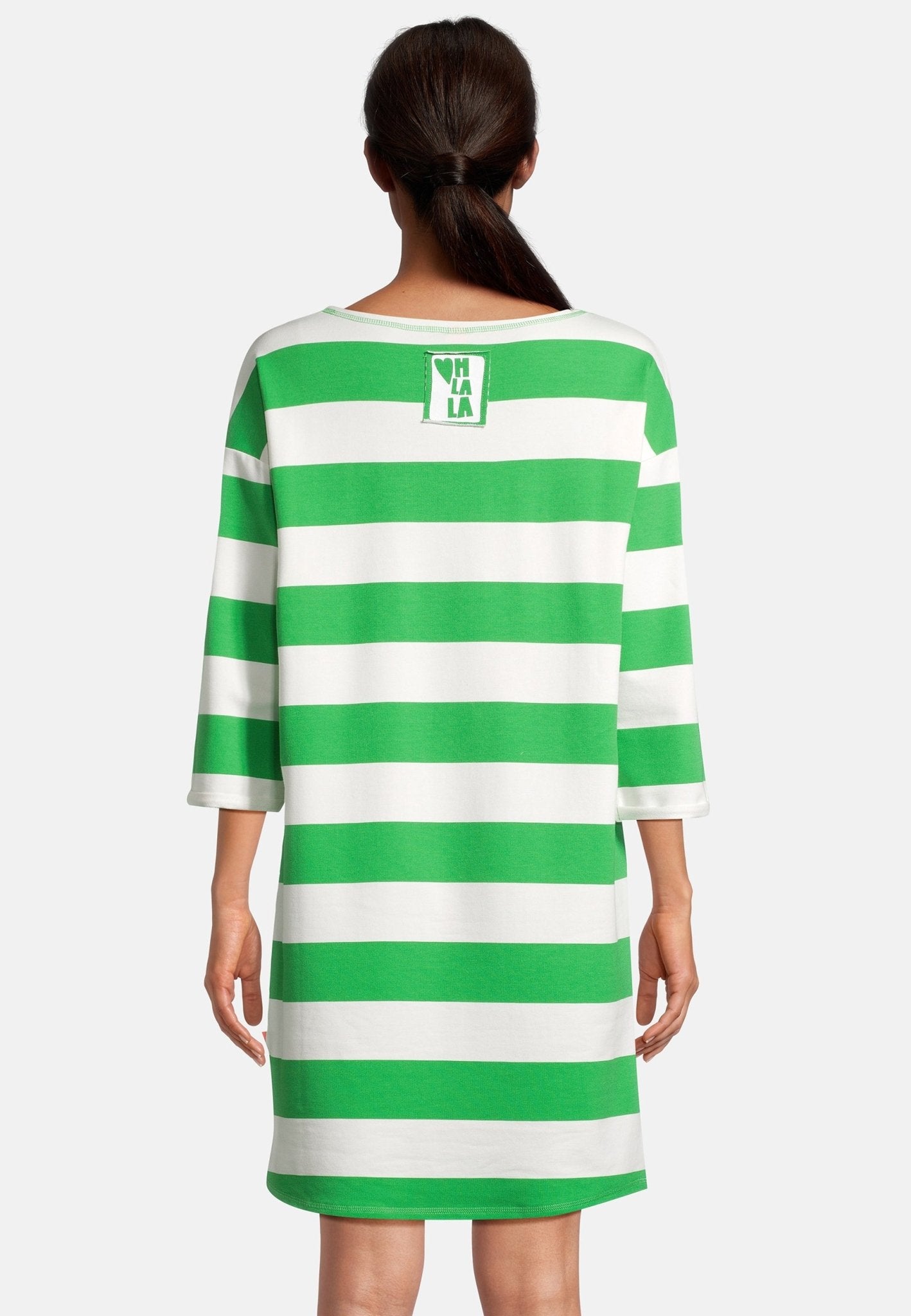 Gefertigt aus weicher Baumwolle mit leichtem Stretch bietet das Knielanges Kleid (Midi) einen angenehmen Griff und fällt locker und dennoch formstabil. In sorgfältiger Verarbeitung zeigt sich die Liebe zum Detail in einem dezenten Backpatch mit „OHLALA“ sowie in der maritimen Blockstreifen-Optik, während die Produktion in Europe für nachhaltige Qualität und faires Handwerk steht. So verbindet dieses Ringelkleid Stil und Alltagstauglichkeit auf charmante Weise.
