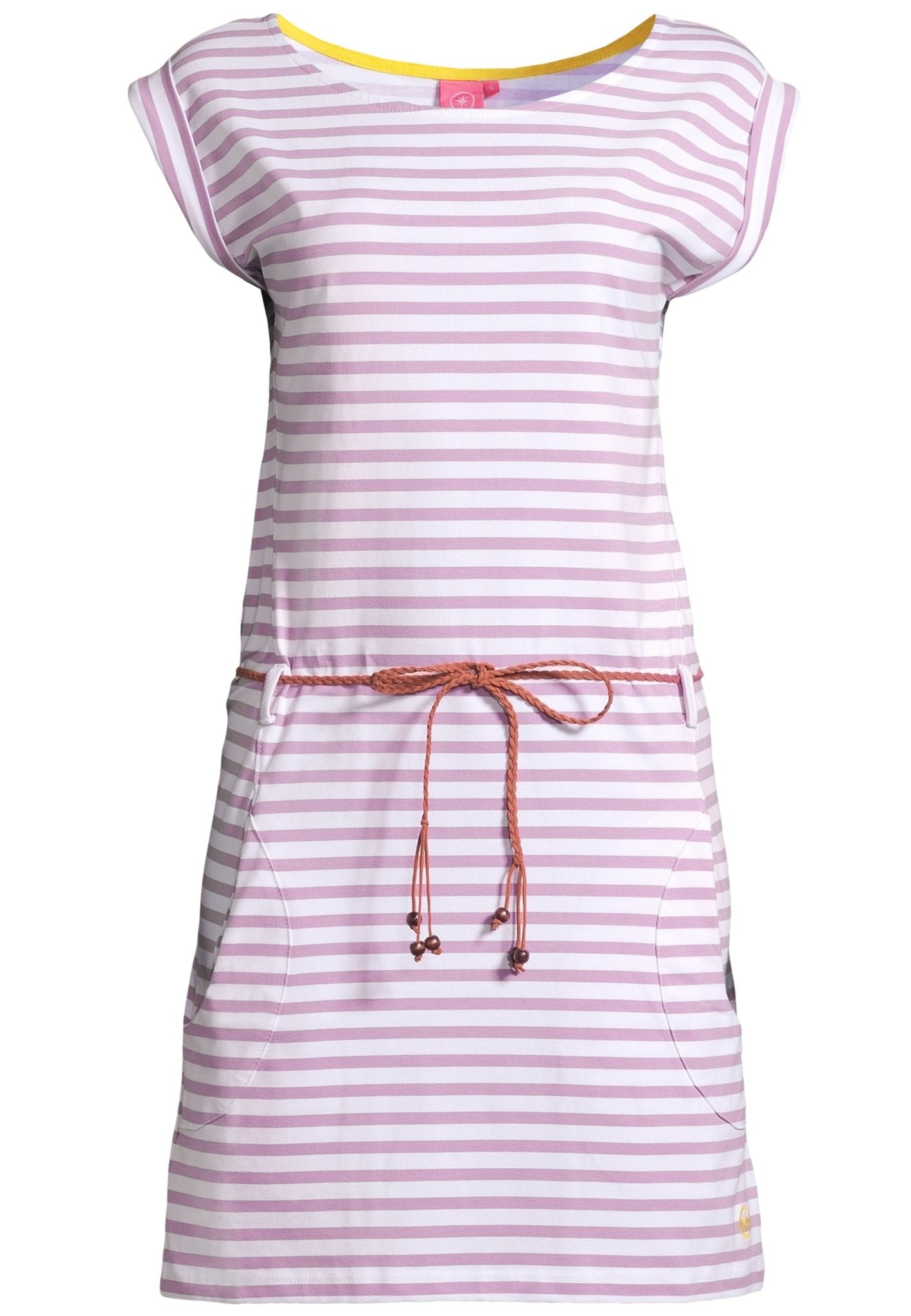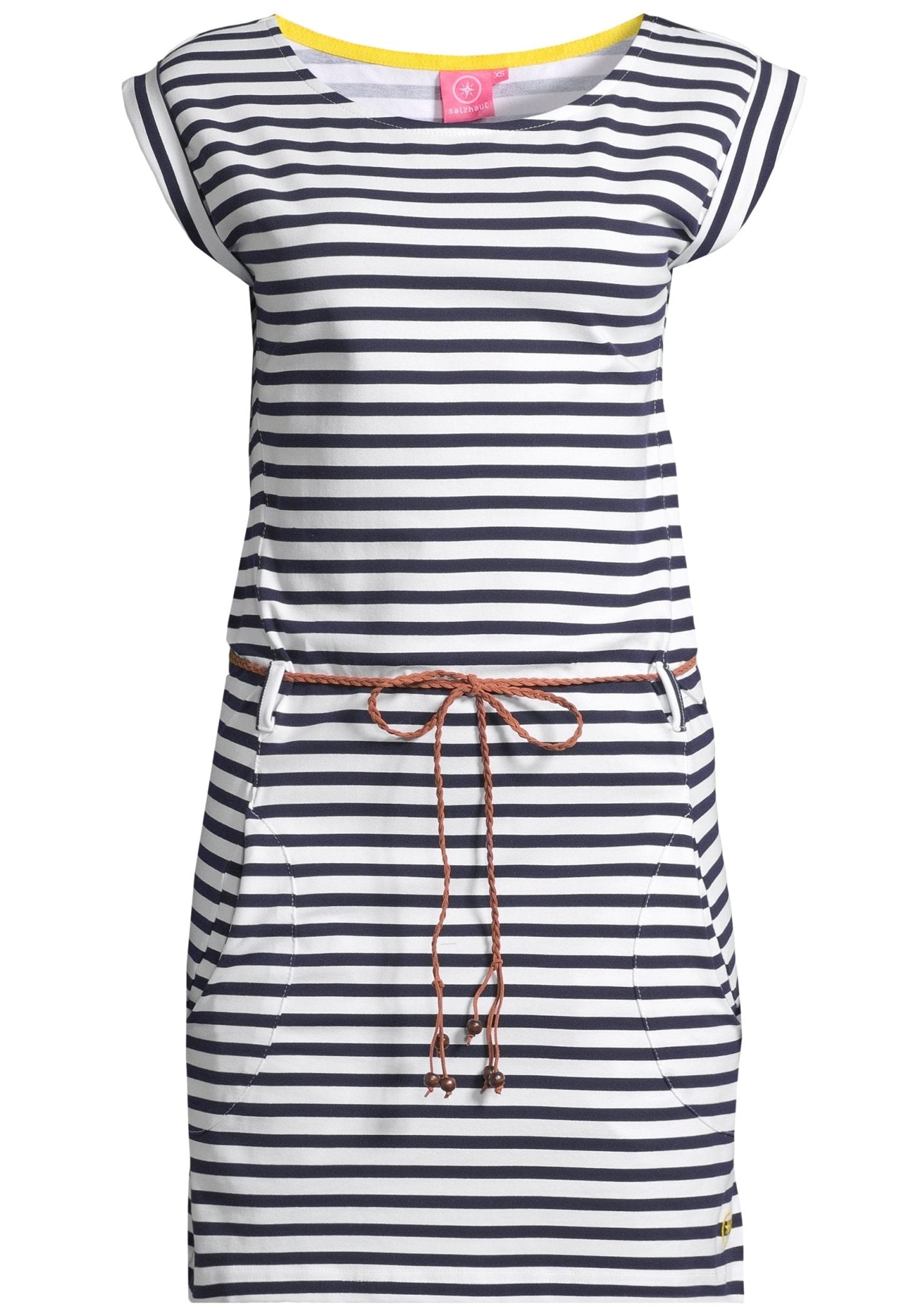 Das GALA Damen Tailliert Kleid von Salzhaut schenkt ein luftig-leichtes Tragegefühl und umschmeichelt die Silhouette auf natürliche Weise. Der taillierte Schnitt mit praktischem Kordelzug betont die Taille ohne einzuengen und sorgt für viel Bewegungsfreiheit im Alltag. Kurzärmeliger Komfort und das geringelte Design verleihen dem Sommerkleid eine frische, nordische Leichtigkeit, die sofort gute Laune macht.