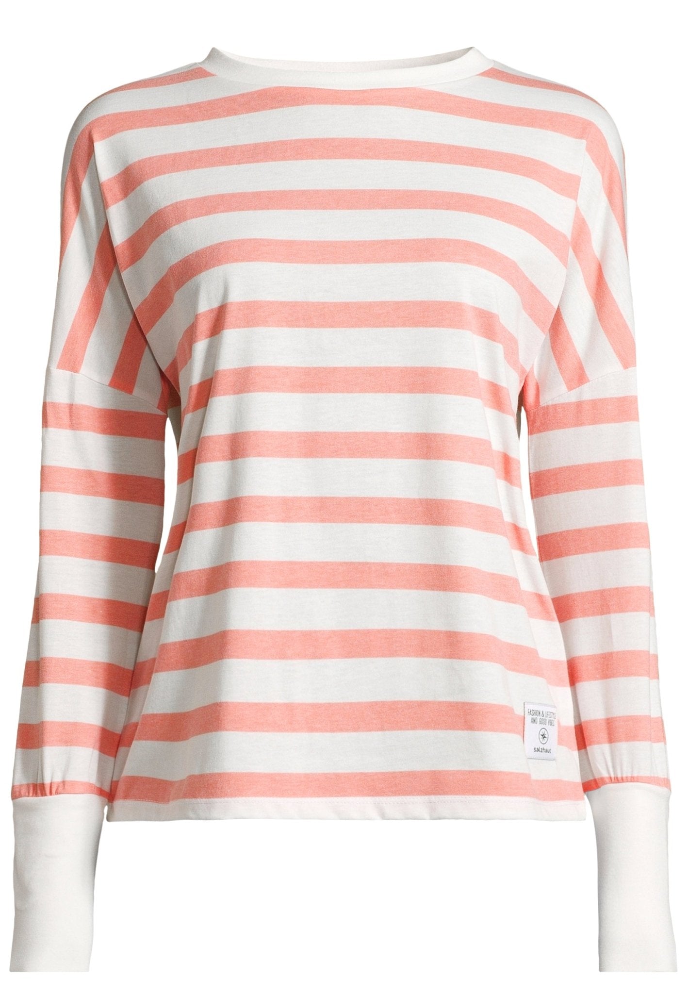In Sachen Qualität überzeugt das KLUET durch eine weiche Baumwollmischung im Single-Jersey, die sich sanft auf der Haut anfühlt und lange Freude bereitet. Hergestellt in Europa unter fairen Bedingungen steht das Damen Langarmshirt für sorgfältige Verarbeitung und nachhaltige Produktion, ergänzt durch dezente Streifen in den frischen Farbkombinationen beige-aqua oder beige-coral. Solche Details zeigen die Liebe zum Handwerk bei Salzhaut.