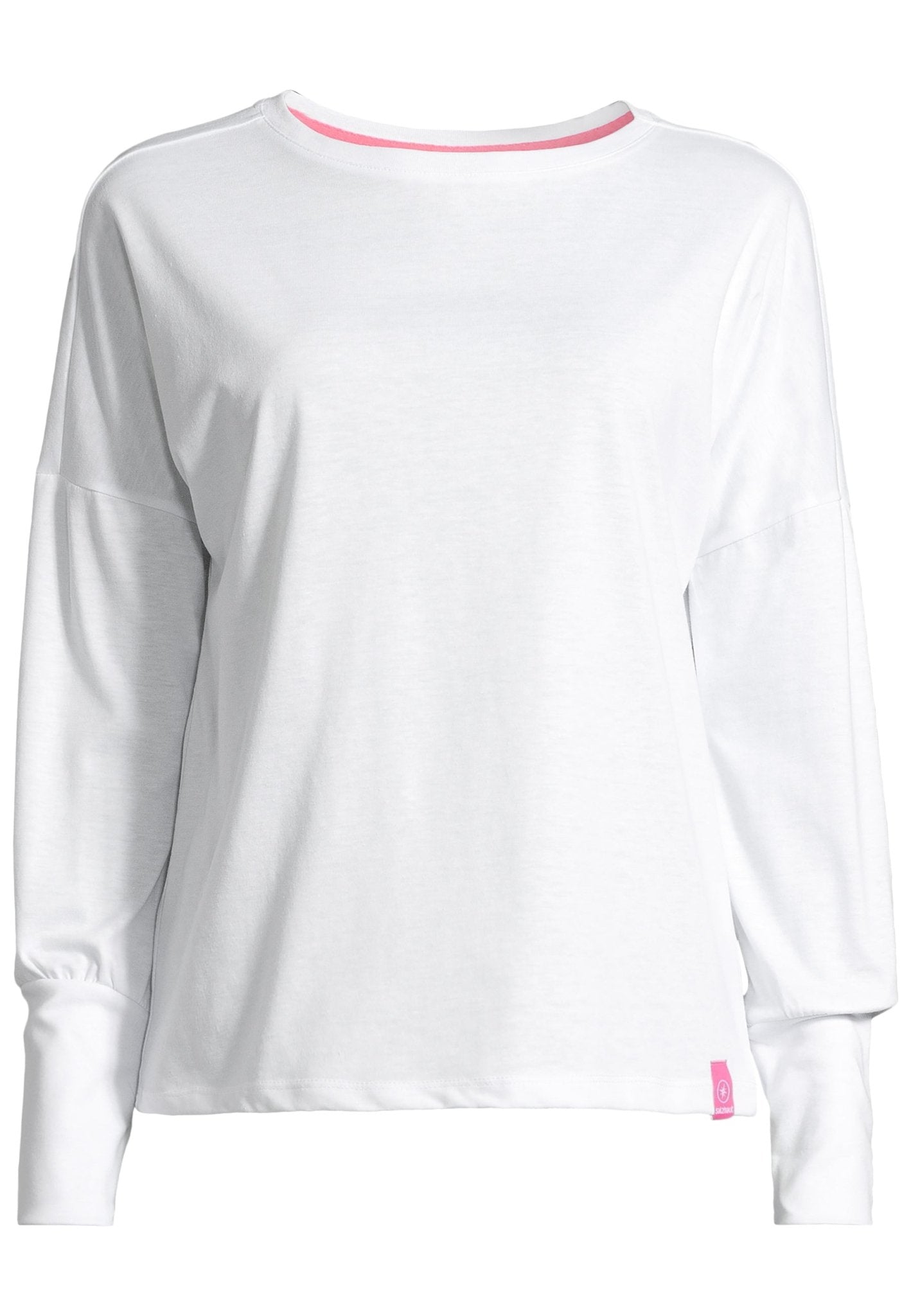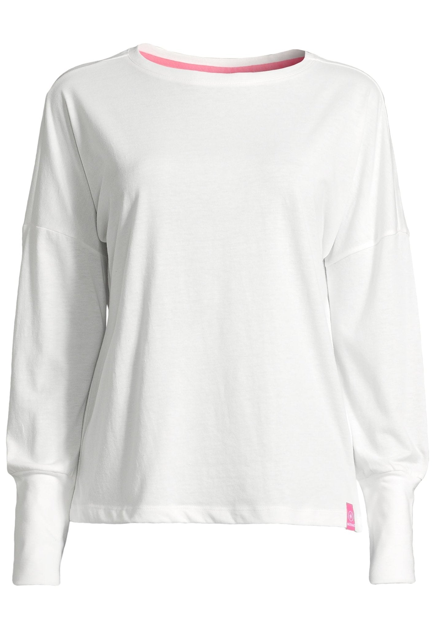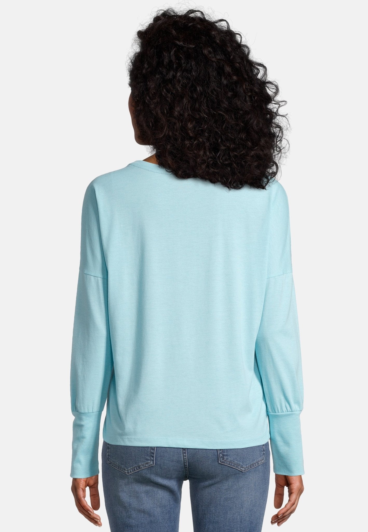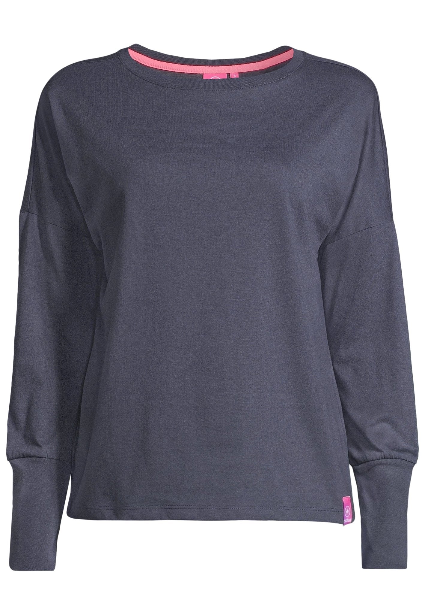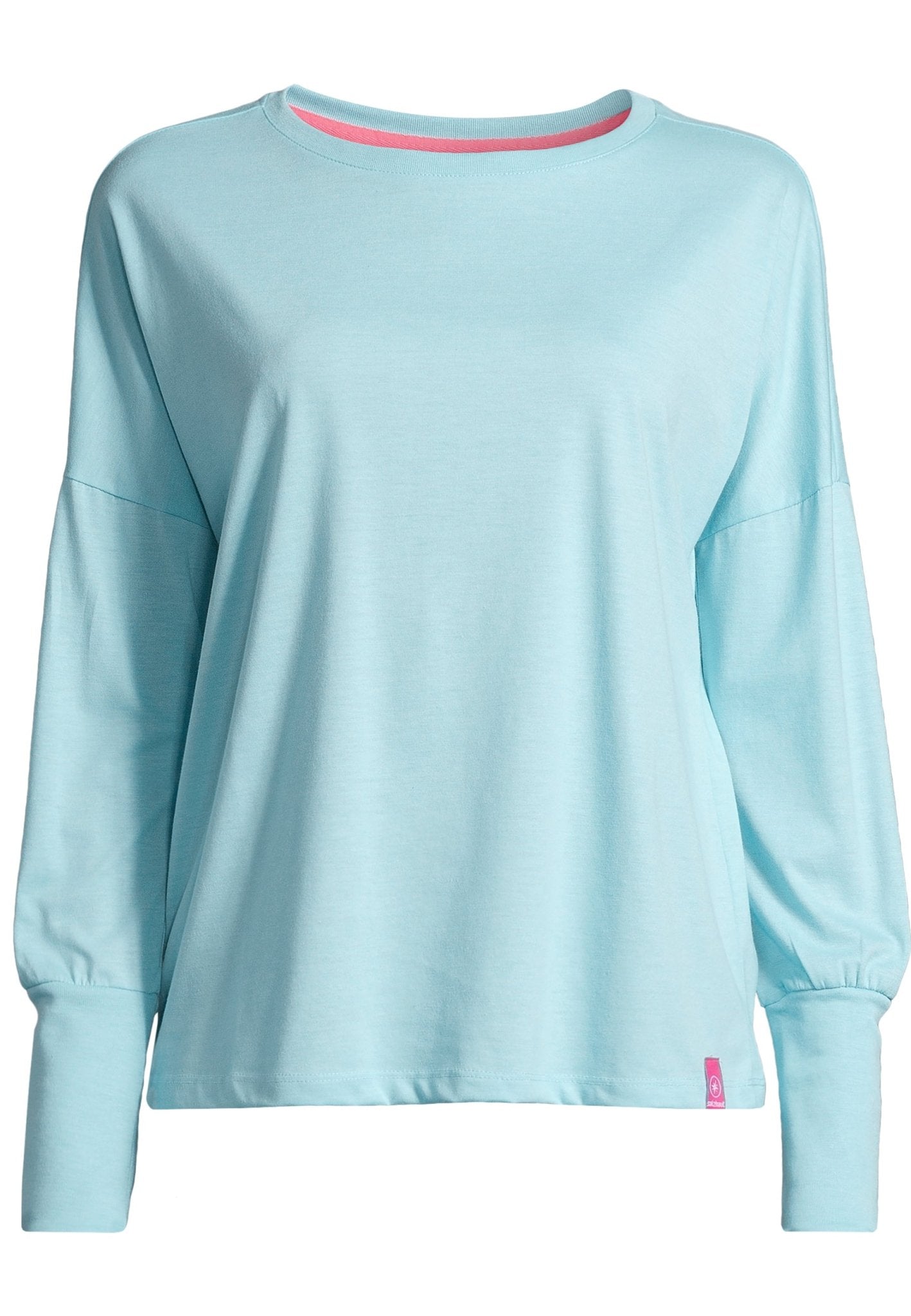 The SMAAK women's long-sleeve shirt in a regular fit from Salzhaut immediately feels airy and light on the skin. The loose cut with a wide crew neckline and dropped sleeves offers freedom of movement and a flattering silhouette that conveys Nordic joie de vivre. Dropped shoulders and the wide ribbed cuffs on the sleeves ensure relaxed wearing comfort, perfect for everyday life as well as small adventures.