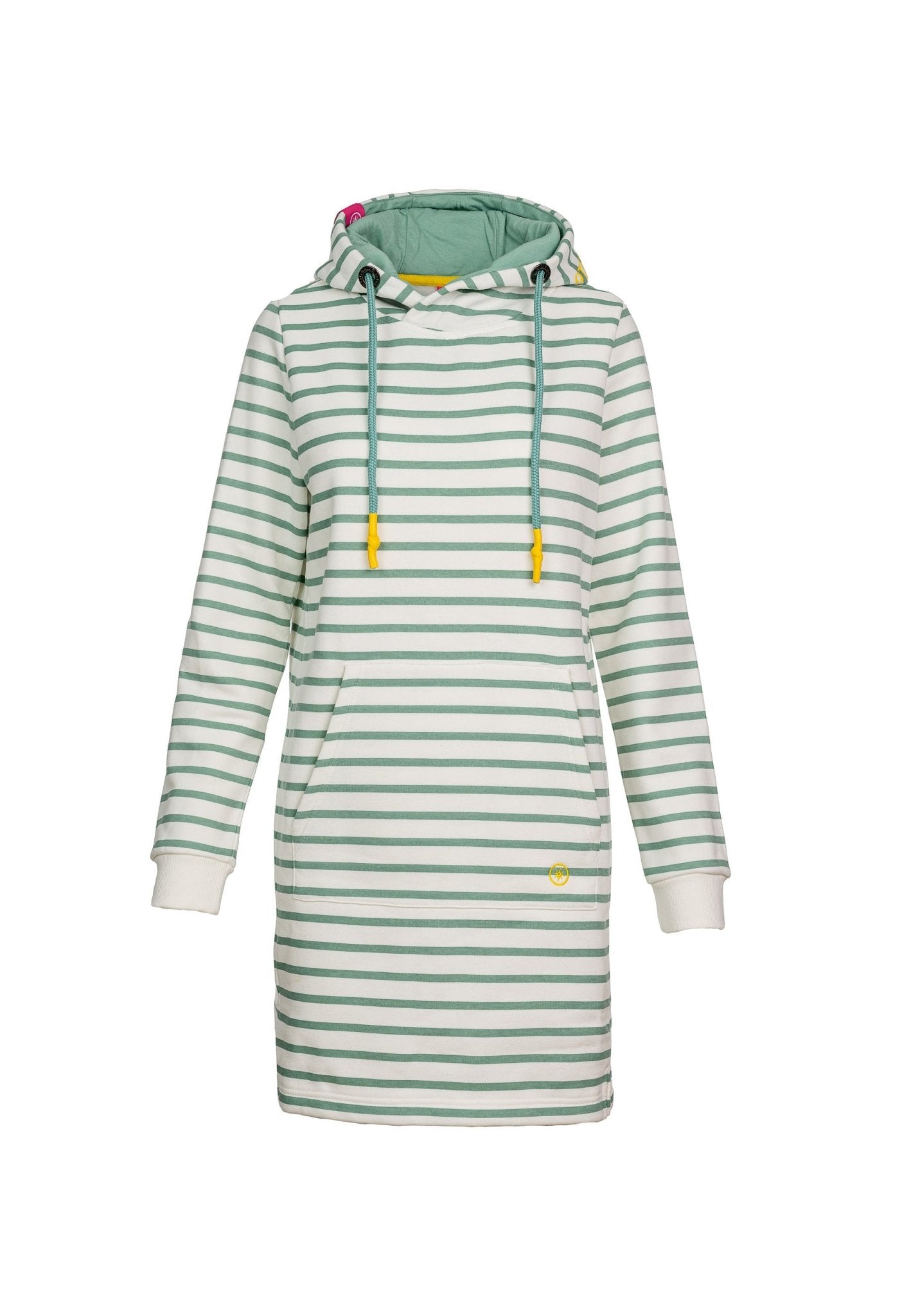 Salzhaut stands for Nordic lightness, colorful joie de vivre, and lasting quality, and the women's hoodie dress GERHILDA Women's Tailored is a clear promise of this. Whether for a city stroll or a spontaneous weekend by the sea, this dress accompanies you with cozy comfort and a robust character. Treat yourself to the little feeling of happiness that Salzhaut makes palpable in every stitch.