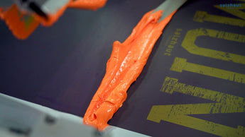 Beim Siebdruck wird die Farbe durch eine sogenanntes Sieb mit einem Rakel direkt auf dein Kleidungstück gedruckt.