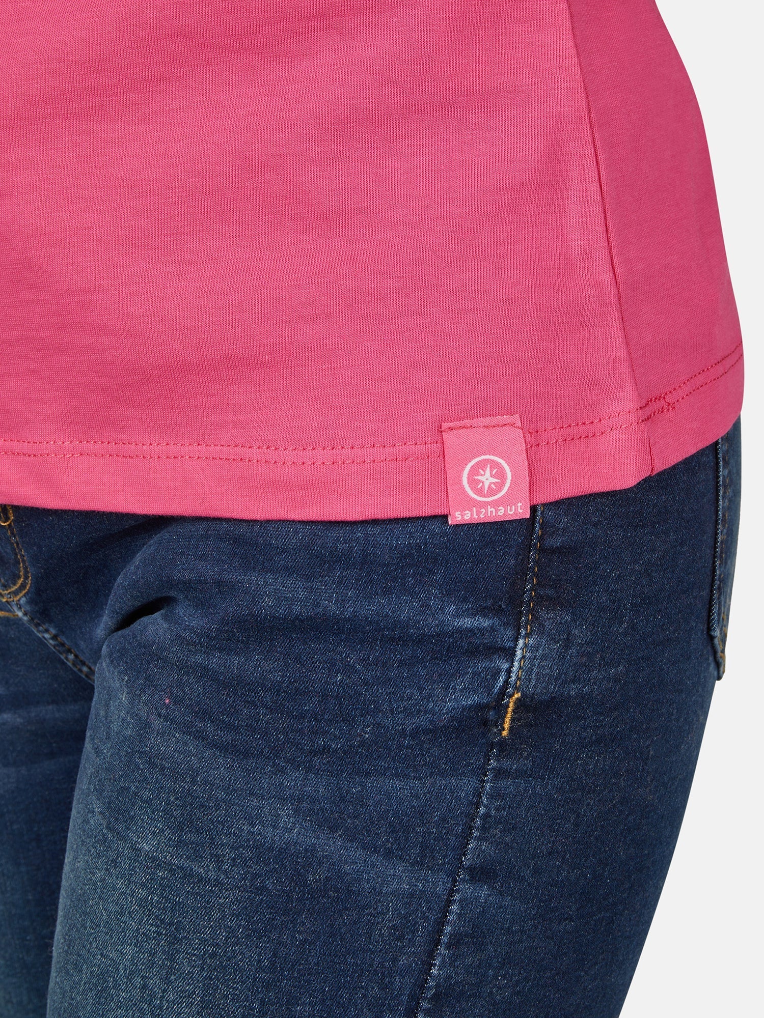 Die Qualität des Shirts zeigt sich in der weichen Baumwolle und in der sorgfältigen Verarbeitung, die für Langlebigkeit sorgt. Ein dezentes, pinkes salzhaut-Badge setzt dabei ein farbiges Detail, das dem BIIKE Damen Tailliert Charakter verleiht, ohne aufdringlich zu sein. Das Ergebnis ist ein hochwertiges, unifarbenes Shirt, das mit bedacht gefertigt wurde und dir lange Freude bereiten wird.