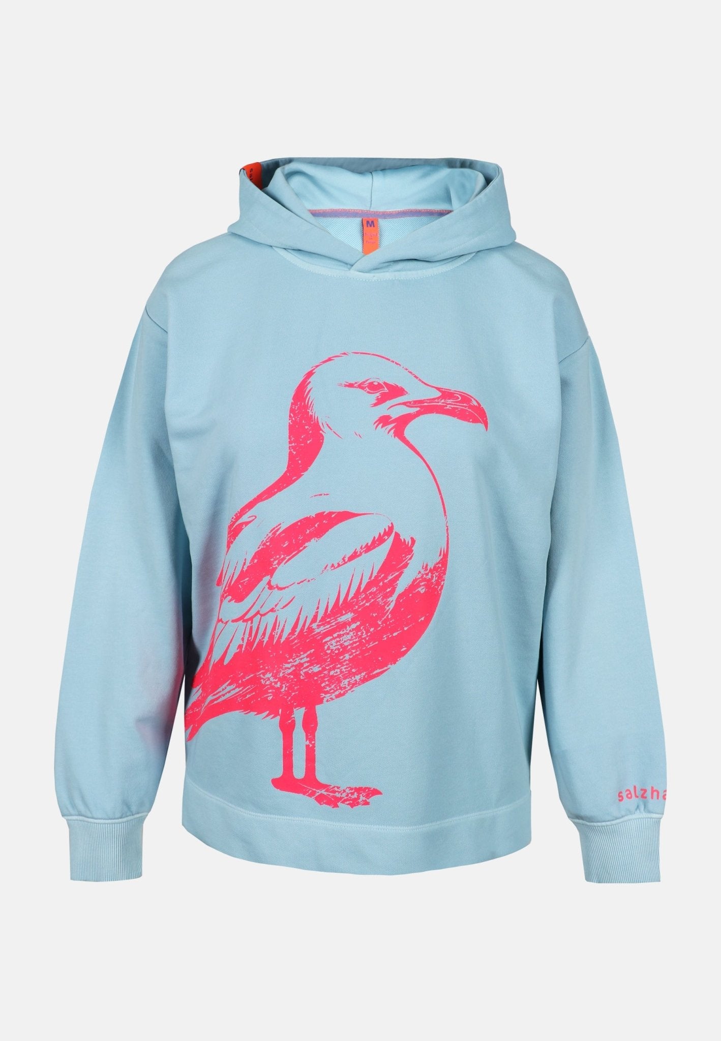 Die Qualität zeigt sich in der French Terry Verarbeitung mit aufgerauter Innenfläche, die Wärme und Komfort harmonisch verbindet. Als Highlight sorgt der markante Motivprint Möwe für den charakteristischen Salzhaut-Look, während die sorgfältige Fertigung das Stück langlebig macht. So entsteht ein Hoodie, der durch Materialwahl und liebevolle Verarbeitung angenehm im Griff bleibt und dabei moderne Akzente setzt.