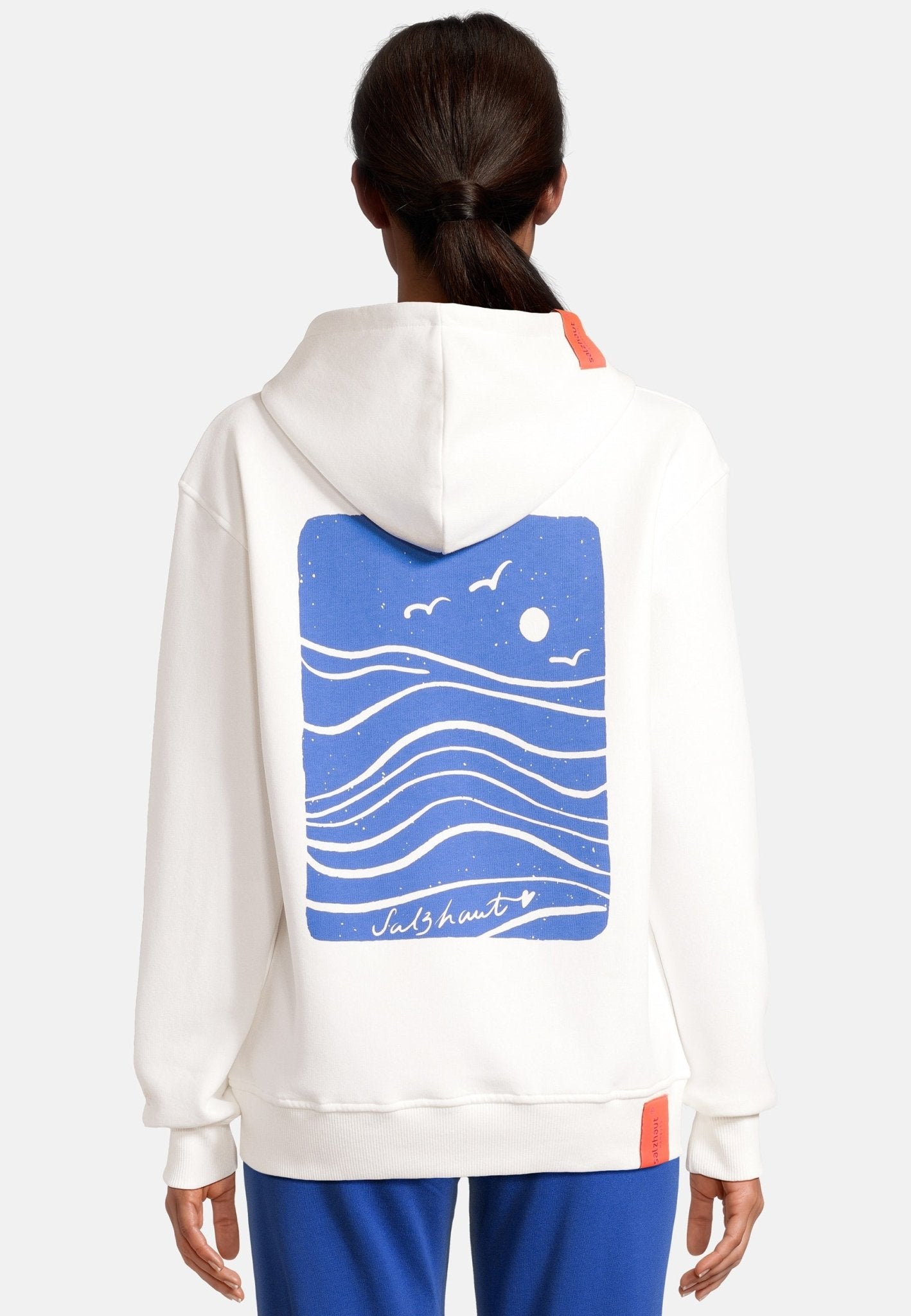 Der OLLENBORG Damen Oversized Hoodie von Salzhaut umhüllt dich sofort mit einem kuschelig weichen Tragegefühl und nordischer Leichtigkeit. Der Oversized Fit schenkt viel Bewegungsfreiheit und eine entspannte Silhouette, die sowohl im Alltag als auch am Meer Raum zum Atmen lässt. Die großzügige Kapuze lädt zum Einkuscheln ein und vermittelt diese unaufgeregte, lebensfrohe Stimmung, für die Salzhaut steht.