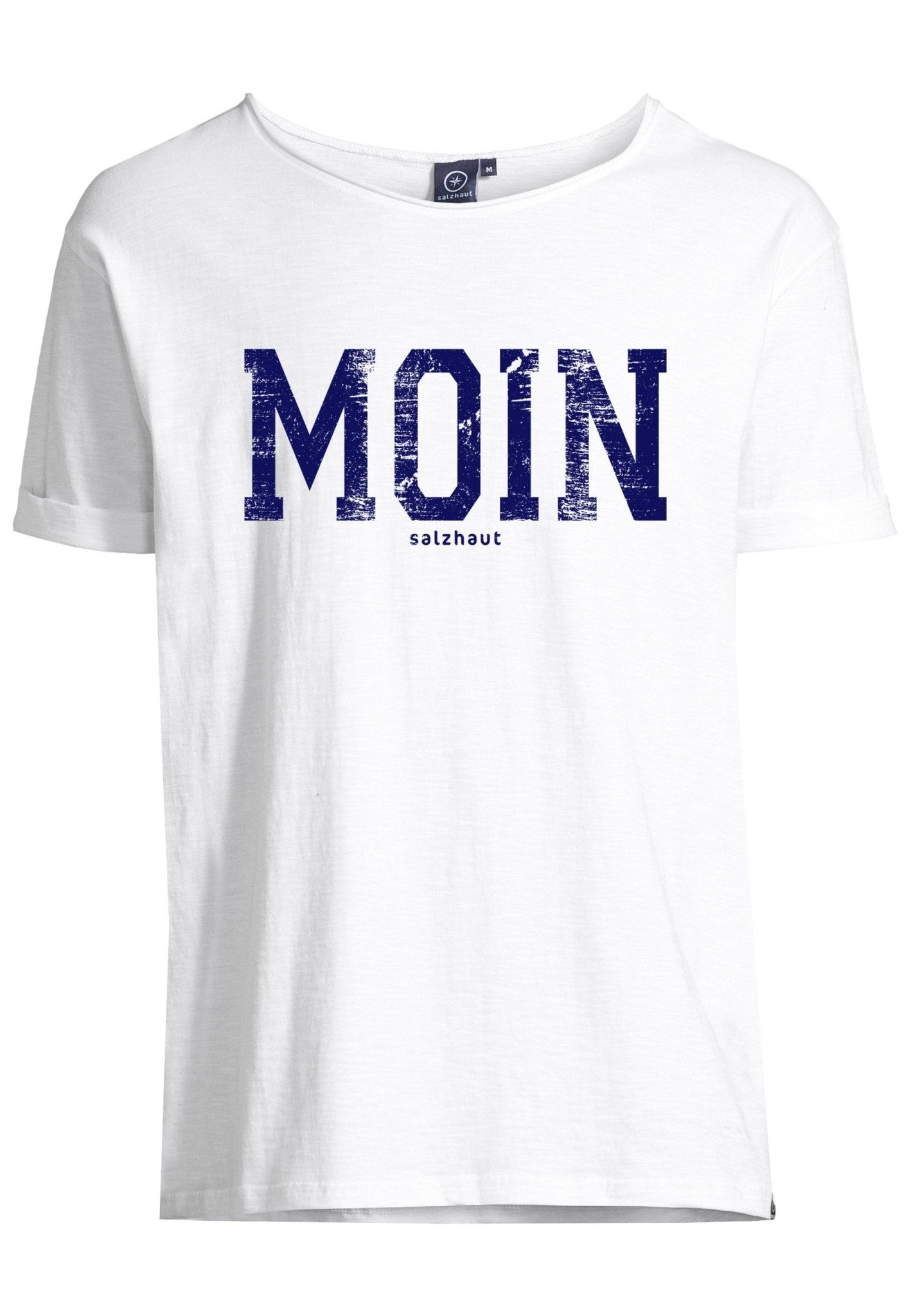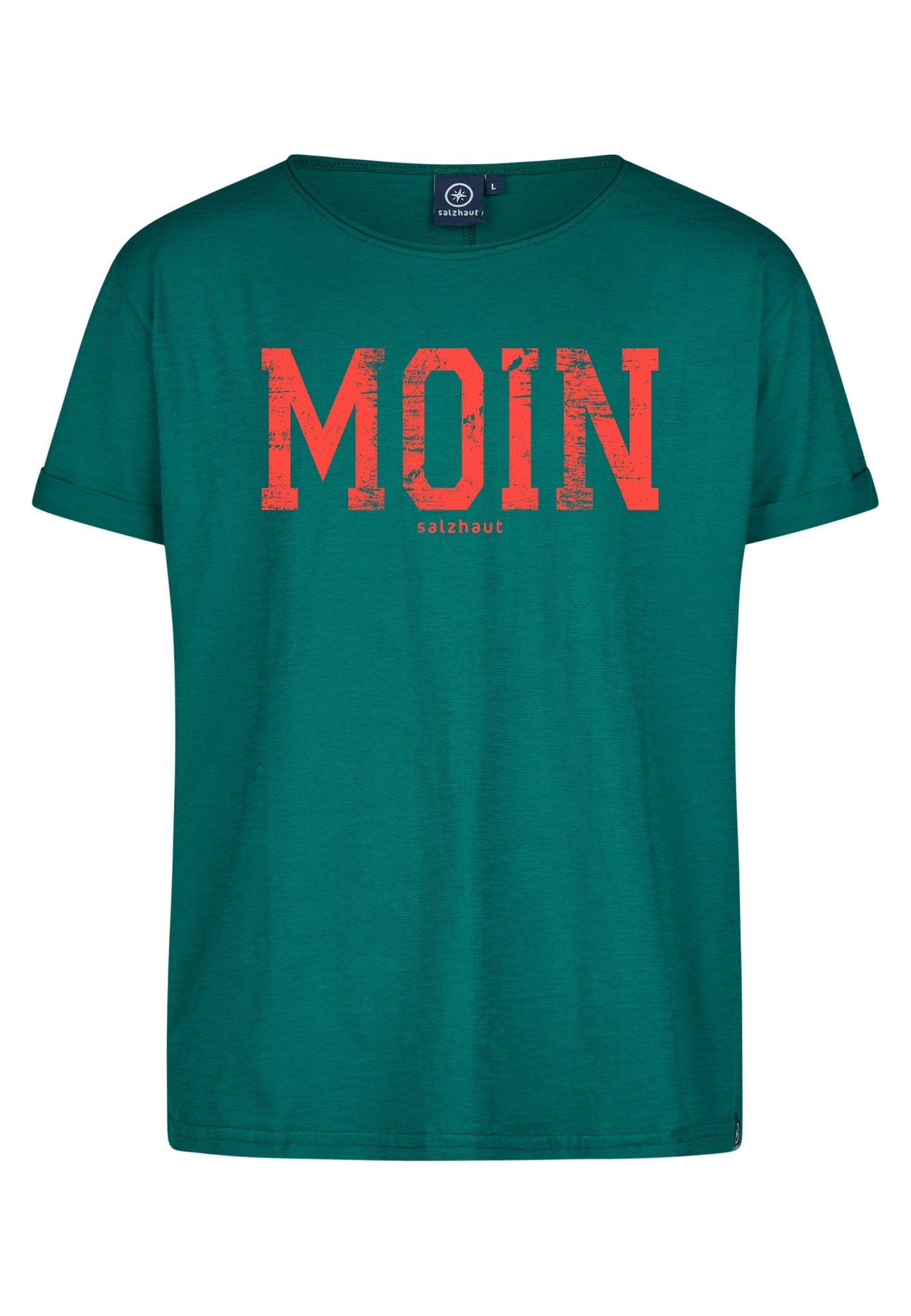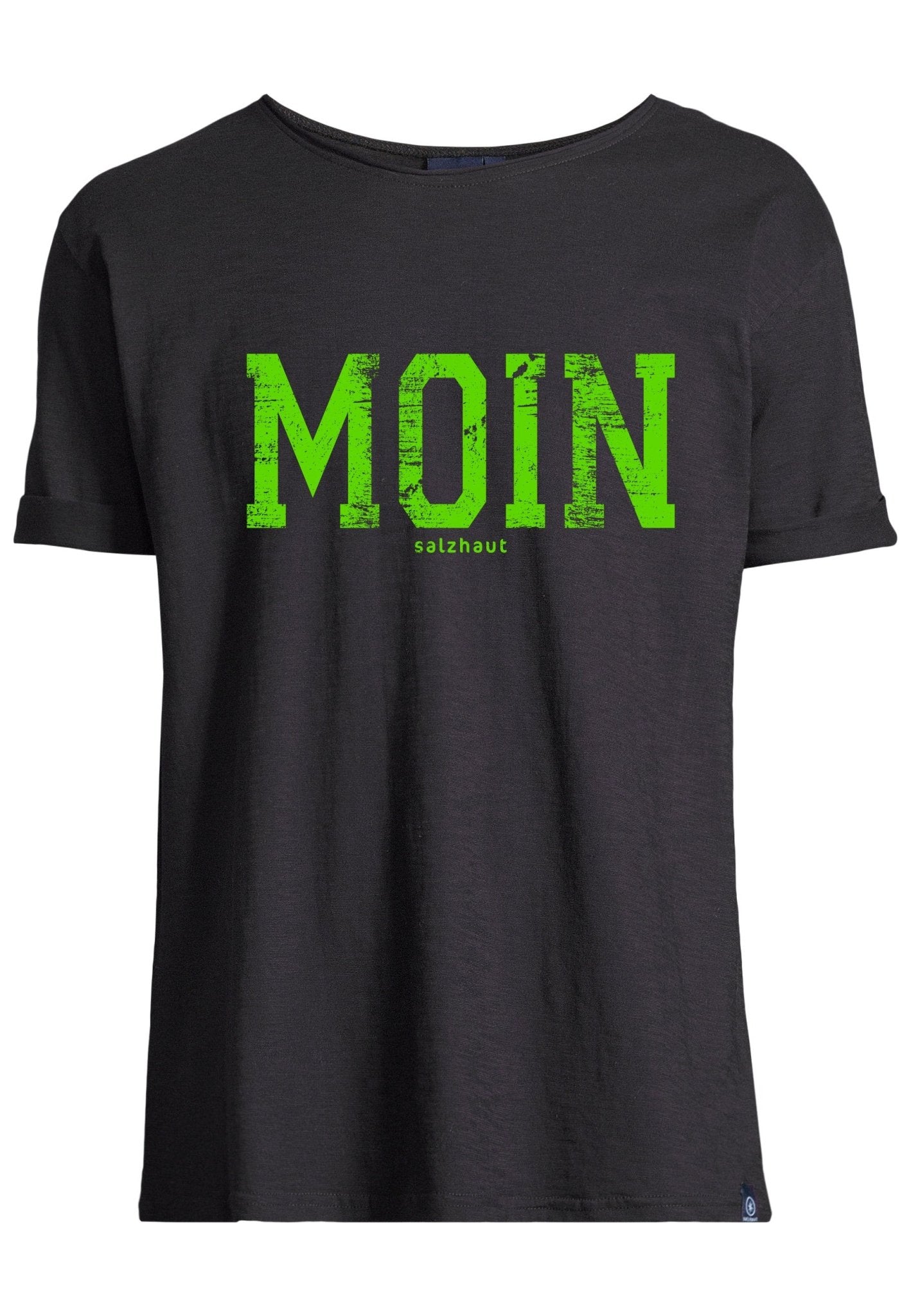 Hergestellt aus superweicher Baumwolle fühlt sich das Shirt sichtbar hochwertig an und lädt zum Wohlfühlen ein; die angenehme Haptik unterstreicht die sorgfältige Verarbeitung. Das auffällige Siebdruckprint „MOIN“ setzt ein farbenfrohes Statement und bleibt dank liebevoller Fertigung ein langlebiges Detail. Made in Europe steht hierbei für faire Produktion und sorgt dafür, dass dieses Herren T-Shirt Qualität ausstrahlt, die man mit Salzhaut verbindet.