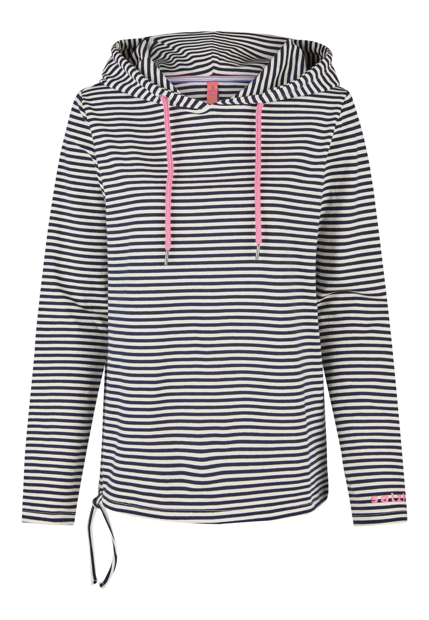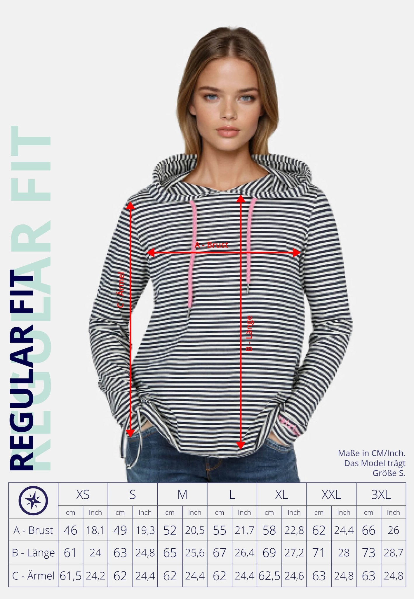 Die Verarbeitung des TEGE Damen Relaxed-Fit zeigt Salzhaut-typische Sorgfalt: weiche Baumwolle mit leichtem Stretch sorgt für ein anschmiegsames Tragegefühl und beständige Form. Als besondere Akzente setzt der gestrickte Ringel ein maritimes Highlight, das den entspannten Charakter des Damen Hoodie unterstreicht, und die Fertigung Made in Europe steht für langlebige Qualität und liebevolle Verarbeitung.